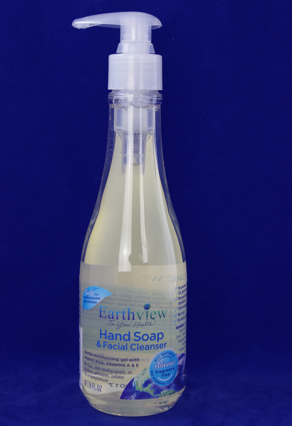 Earthview® fragrance free Hand Soap & Facial Cleanser is a rich, premium formulation with organic Aloe, botanical extracts and anti-oxidant vitamins A & E. These ingredients combine with other gentle components to clean, soften and protect your skin. A smooth moisturizing gel lathers up quickly and rinses away completely for an enjoyably clean and refreshed sensation.