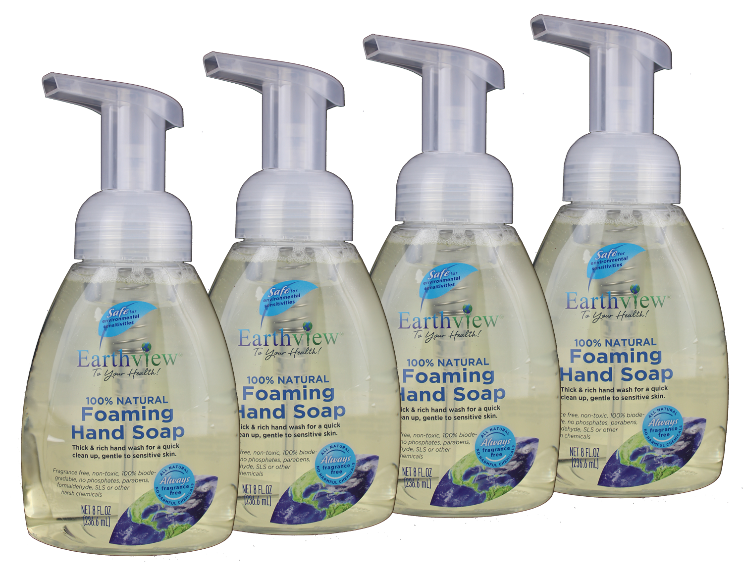 Earthview® Fragrance Free Foaming Hand Soap is made from safe ingredients for sensitive skin. This safe and gentle formula contains no harmful chemicals that can often cause skin irritations. The handy foamer pump quickly dispenses a thick, ready-to-lather foam for quick and thorough clean-ups. Earthview® Foaming Hand Soap leaves your hands clean and refreshed.